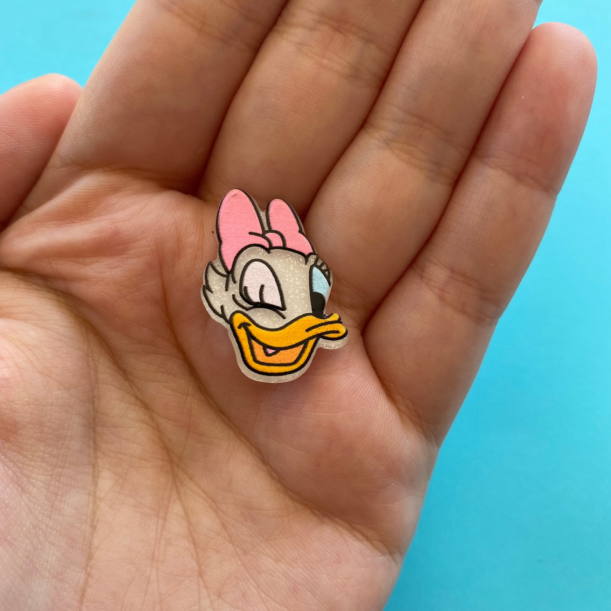 Glittery duck face flat back.
